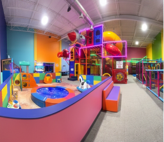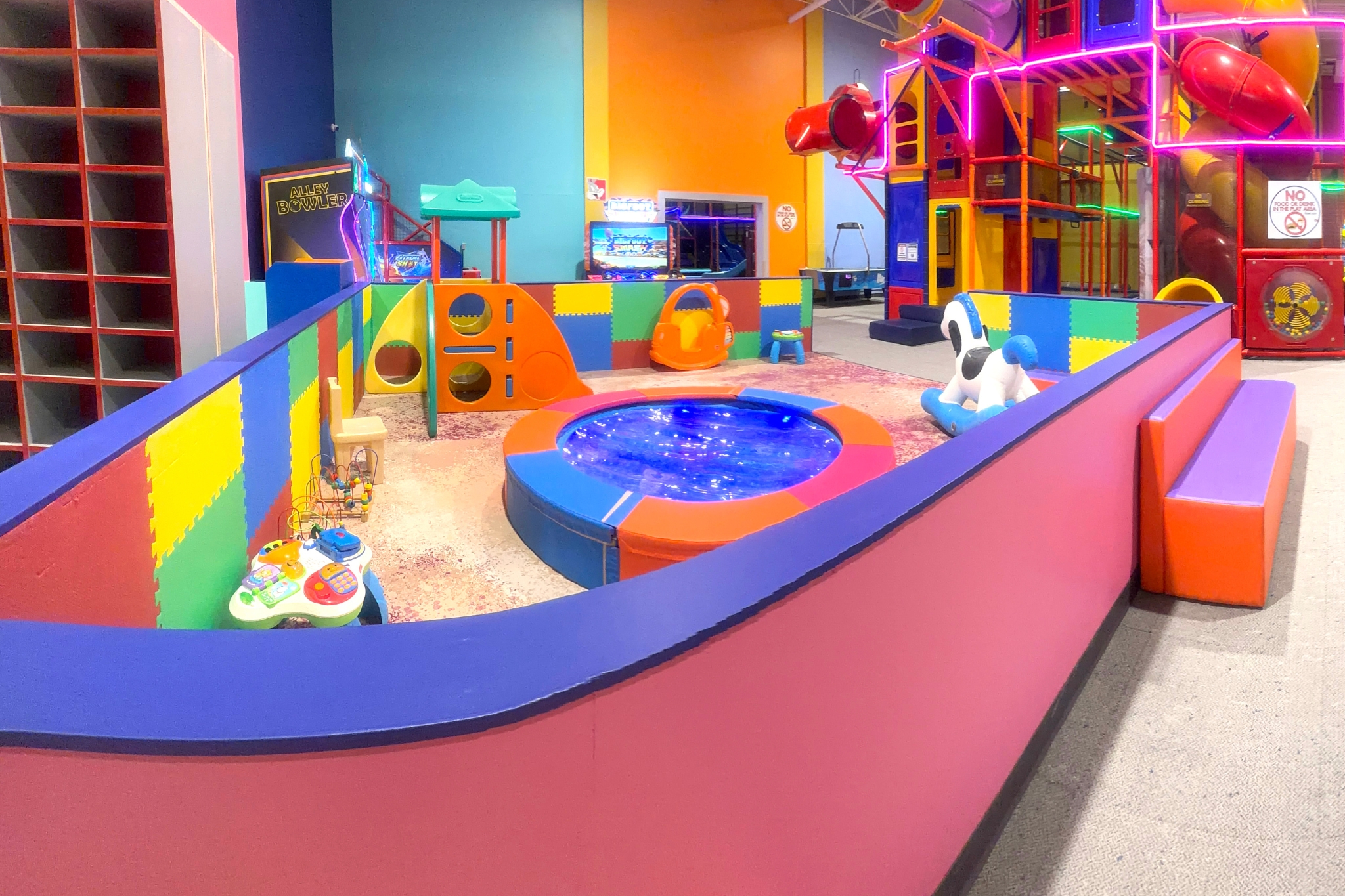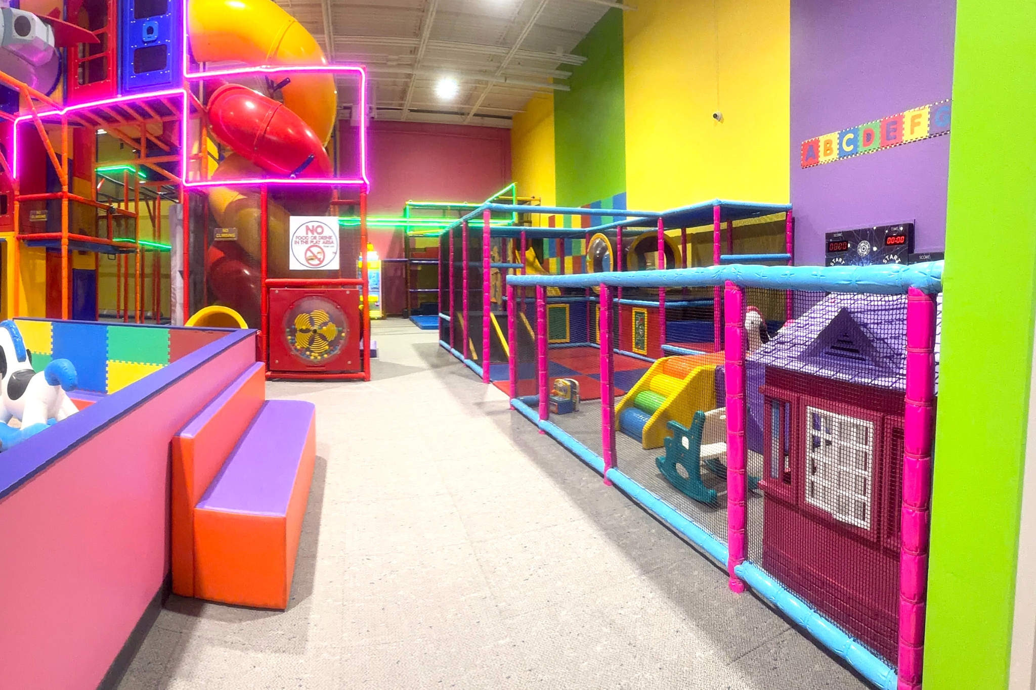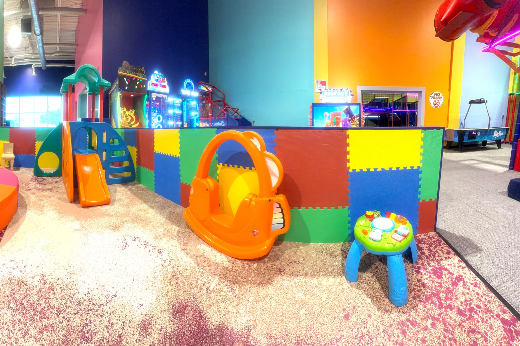 In addition to physical play, toddlers can explore interactive activity panels that spark curiosity and support early learning through touch, movement, and discovery. Soft foam blocks are also available, allowing children to stack, build, and engage in creative play. The entire section is enclosed for added security and designed with soft materials and vibrant colors to keep your little ones engaged. Whether your toddler is climbing, bouncing, or exploring, Playtopia’s Toddler Area offers a fun and enriching playtime experience in a safe indoor environment.